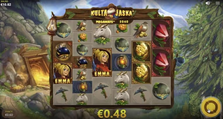 The symbol roster is rich with mining and nature motifs. High-value icons like the Jewel and Gold offer the biggest payouts, while character symbols such as Emma and the Deer provide mid-tier wins. The Kettle, Rock, Bird, Lantern, Flower, and Pick flesh out the reels with thematic consistency. Dynamite serves as the scatter symbol, unlocking the slot’s free spins bonus round when enough land on the reels. Wild symbols substitute for other icons, boosting the odds of landing big combinations. The mix of high and low-paying symbols, alongside wilds and scatters, keeps volatility at a level that can deliver both frequent smaller wins and the occasional, satisfying payout.